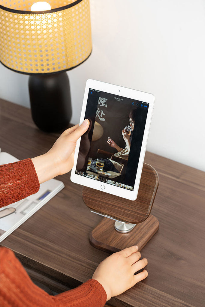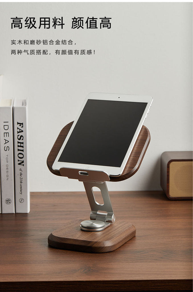 Walnut Wood Tablet Stand, Desktop Office Gaming Chicken Eating Adjustable Rotating Fixed Phone Stand, Wooden Mounts Stands & Holders