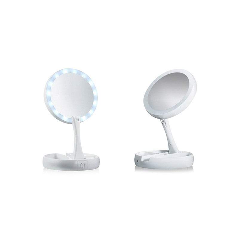 Double Sided Foldable Led Illuminated 10X Magnification Makeup Mirrors
