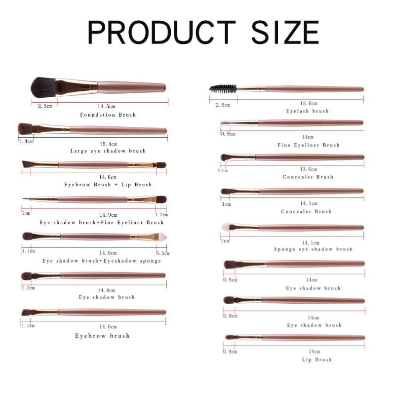 Handle Material: PlasticBr> Brush Material: NylonBr> Used With: LipConcealerFoundationBlusherEye ShadowEyebrow PowderBr> Product Weight: 0.0860 KgBr> Package Weight: 0.0860 KgBr> Package Size (L X W X H): 18.00 X 15.00 X 2.00 Cm / 7.09 X 5.91 X 0.79 InchesBr> You Will Receive: 15 X Branch