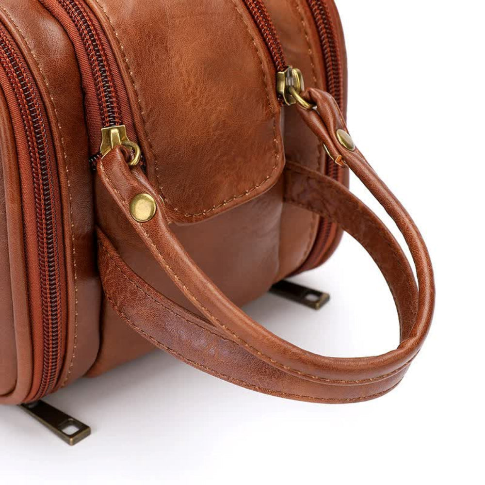 Leather Makeup Bag With Multi-Compartment Organizer