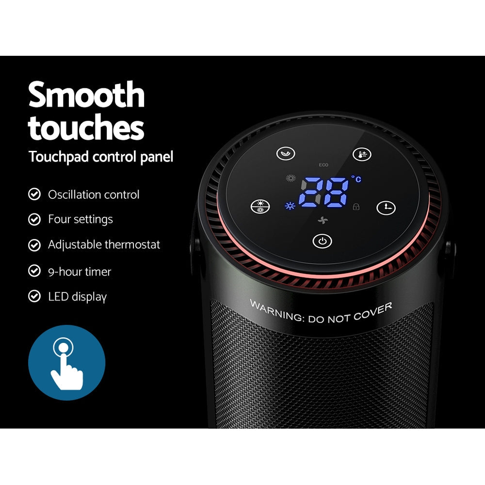 Need A Little Extra Heating To Get Through Winter The Devanti Ceramic Tower Heater Is Here To Solve Your Winter Blues. With Its High-Quality Rapid Ptc Heating System And Fan System The Heater Will Have You Warm In No Time At All. It Has Four Unique Modes (Fan Warm Air Hot Air And Eco Mode) So Youa€™Re Always At The Perfect Temperature. The Eco Energy-Saving Mode Cycles Low And High Heat At 24 Degrees To Save On Energy Costs. It Uses Wide-Angle Oscillation To Evenly Heat Your Space. Easily Control The Heater With The Top Touch Control Panel: Adjust The Thermostat Oscillation And Heating Mode At Any Time. Use The Nine-Hour Timer With Auto Shut-Off To Strategically Heat Your Home And Save Energy. Best Of All The Heater Has Built-In Safety Features Such As An Anti-Scald Protective Mesh A Safety Cut-Off Switch In Case Of tipping And Overheating Protection. For Maximum Comfort And Warmth Through The Winter Months You Cana€™T Go Wrong With A Devanti Ceramic Tower Heater.