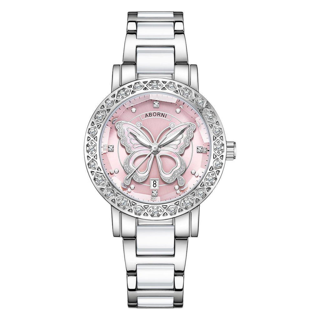 Introducing The Women's Butterfly Quartz Watch A Stunning Timepiece That Combines Elegance And Functionality. This Fashionable Watch Features A Butterfly Mother-Of-Pearl Dial Adorned With Intricate Details Complemented By A Ceramic And Steel Strap For A Luxurious Feel. With Luminous Hands For Night Visibility And A 30M Water Resistance Rating This Watch Is Perfect For Both Daily Wear And Special Occasions.