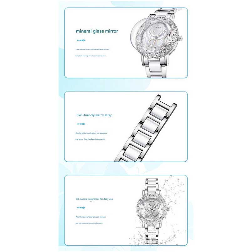 Designed For The Modern Woman This Fashionable Quartz Watch Is A Perfect Accessory For Any Outfit. The Butterfly Mother-Of-Pearl Dial Adds A Unique Elegant Touch While The Ceramic Steel Strap Ensures Durability And Comfort. Whether You're Dressing Up For An Event Or Adding A Chic Touch To Your Everyday Look This Watch Delivers Timeless Style And Practicality.