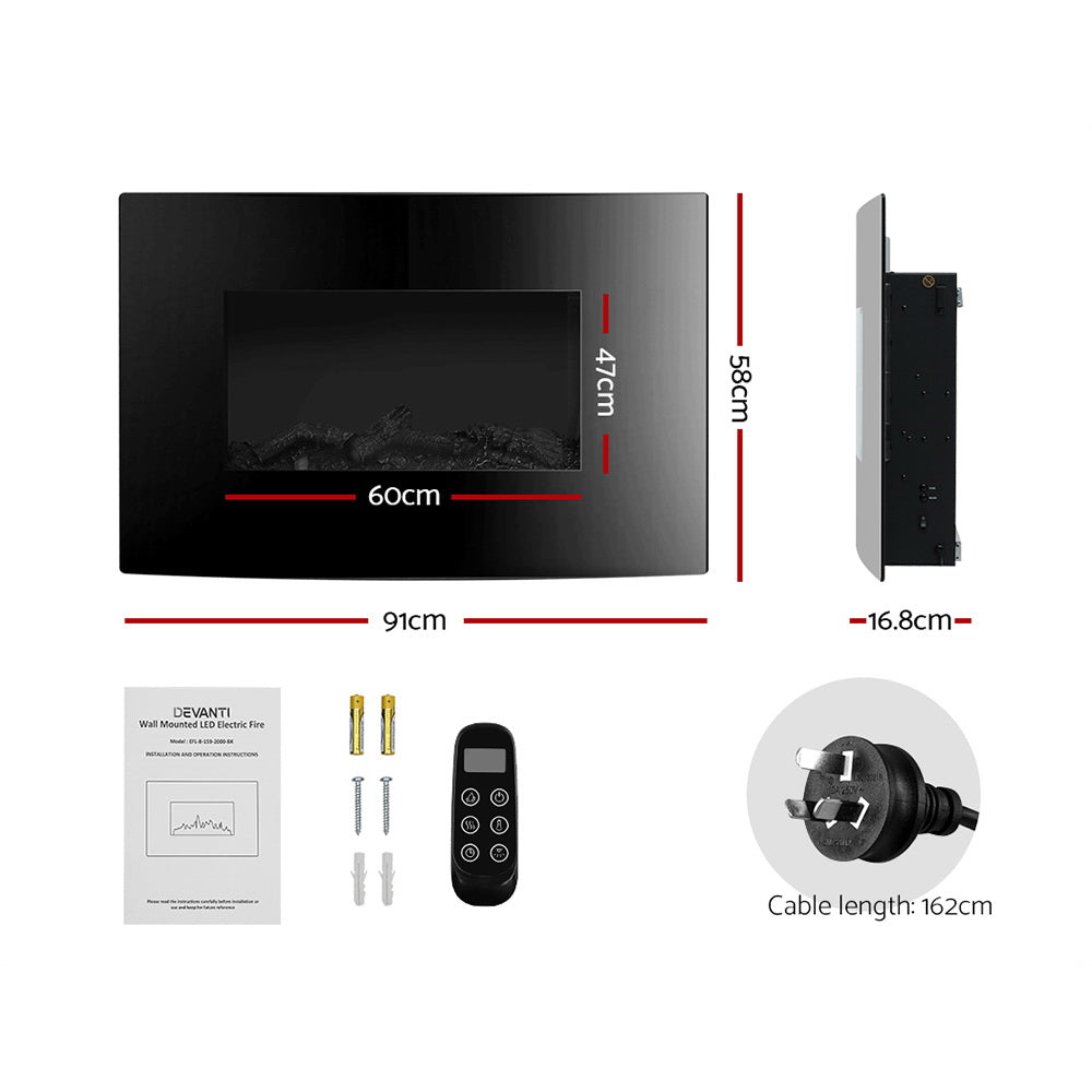 Devanti 2000W Wall Mounted Electric Fireplace Log Wood Heater Realistic Flame Electric Fireplaces