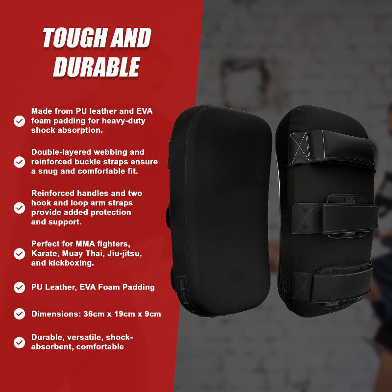 This Durable Kick Pad Is Made From Pu Leather And Features Integrated Eva Foam Padding For Exceptional shock Absorption. The Secure Fit Provided By Double-Layered Webbing Reinforced Buckle Straps Cushioned Wrist Area And Reinforced Handles Ensures The Pad Stays In Place And Offers Added Support.
