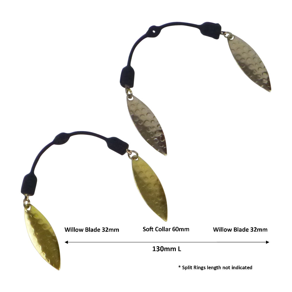 The Two Counter Rotating Willow Leaf Blades Mounted On High Quality Swivels Keep Spinning Both On The Fall And Retrieve. The Soft Plastic Collar And Arms Will Separate The Two Willow Blades Keeping Them Away From The Hook Area While Acting As An Attractor To Many Fresh And Salt Water Species.