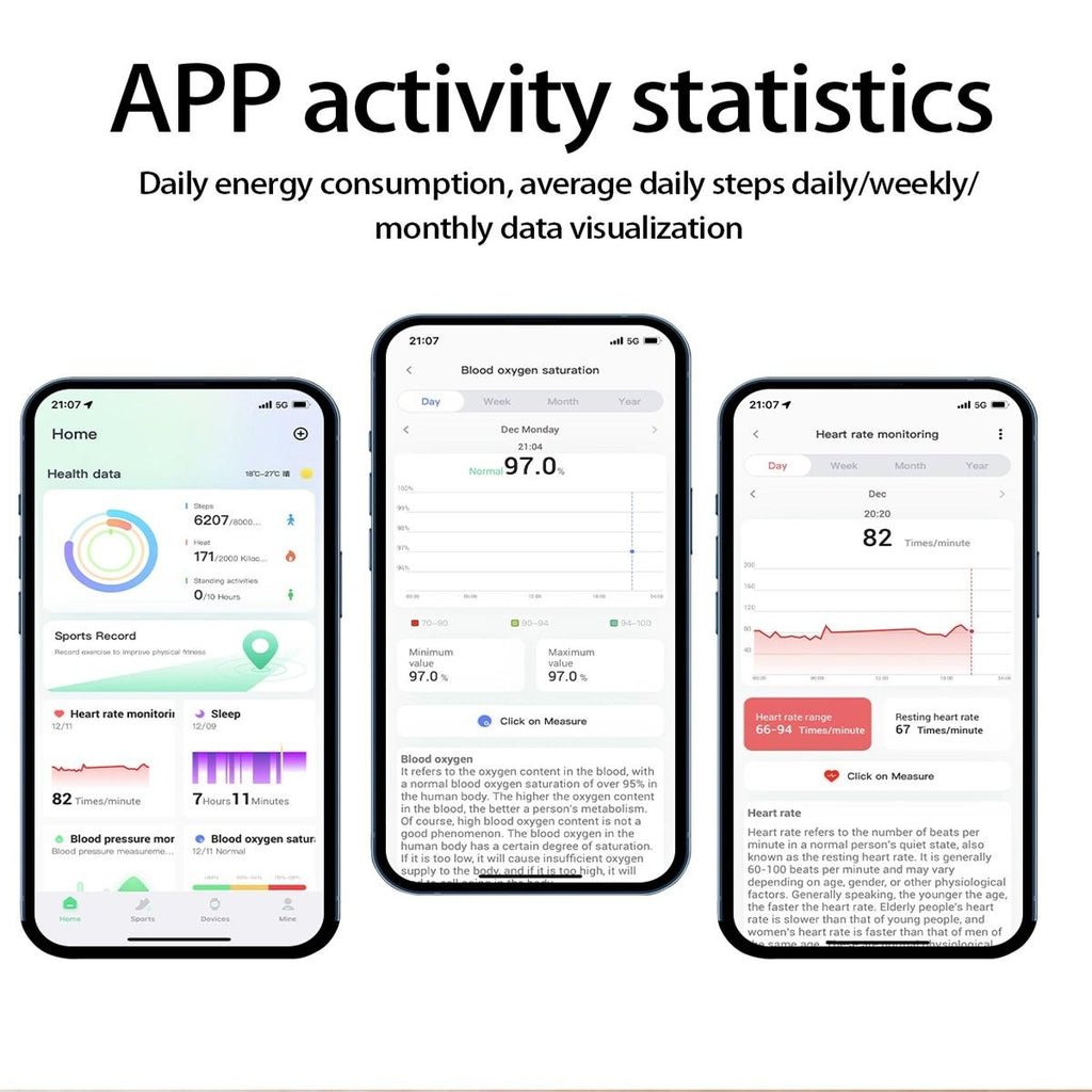 - Monitors Heart Rate Blood Pressure Blood Oxygen And Sleep