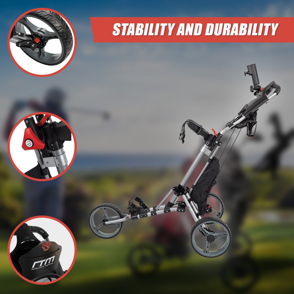 Golf Club Buggy Trolley Cart Compact Foldable 3 Wheel Golf Carts