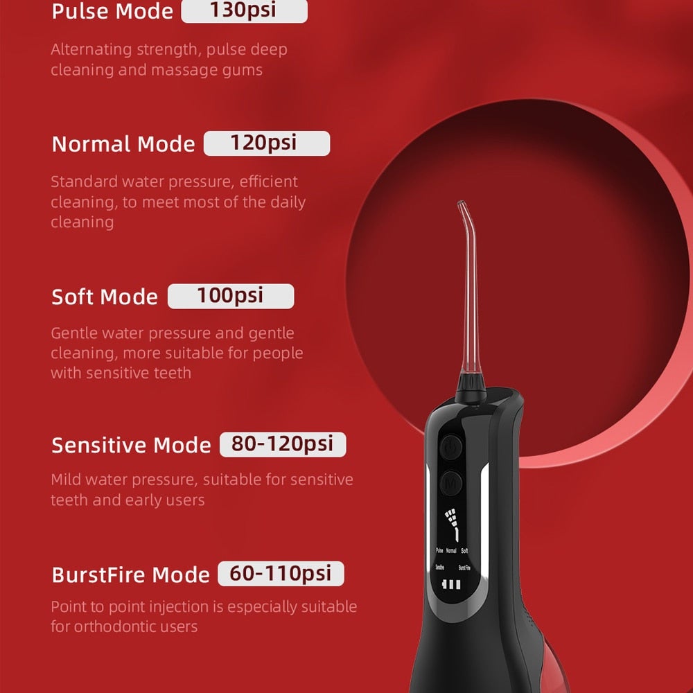 Intelligent Oral Irrigator Water Dental Flosser Rechargeable 5 Mode Port 4 Tip 330Ml Air & Water Flossers