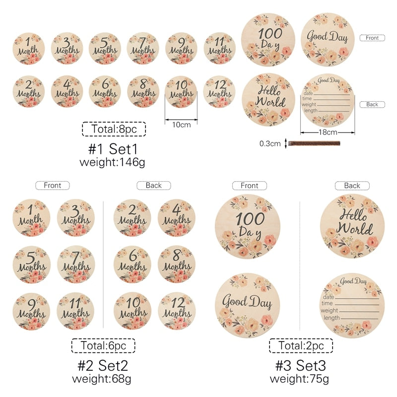 Background Material Wooden Baby Milestone Cards Double Sided Flowers Photography Props Set Of 6