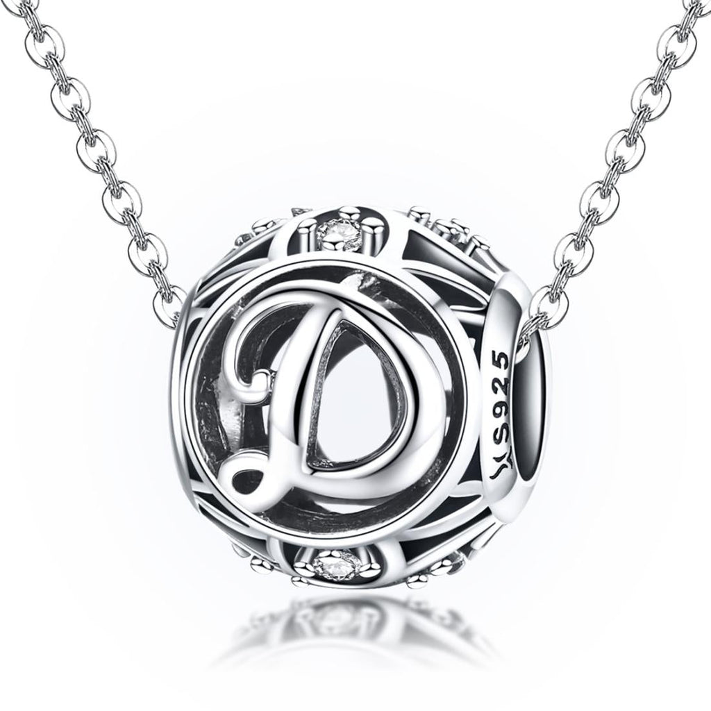 - 1 X 925 Sterling Silver 26 English Letter Bead For Diy Bracelets Necklaces – Style D
