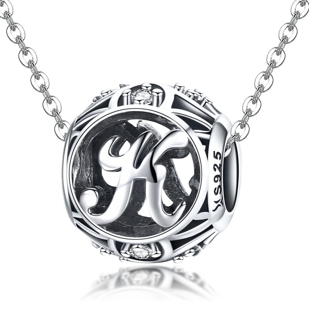 - 1 X 925 Sterling Silver 26 English Letter Bead For Diy Bracelets Necklaces – Style K