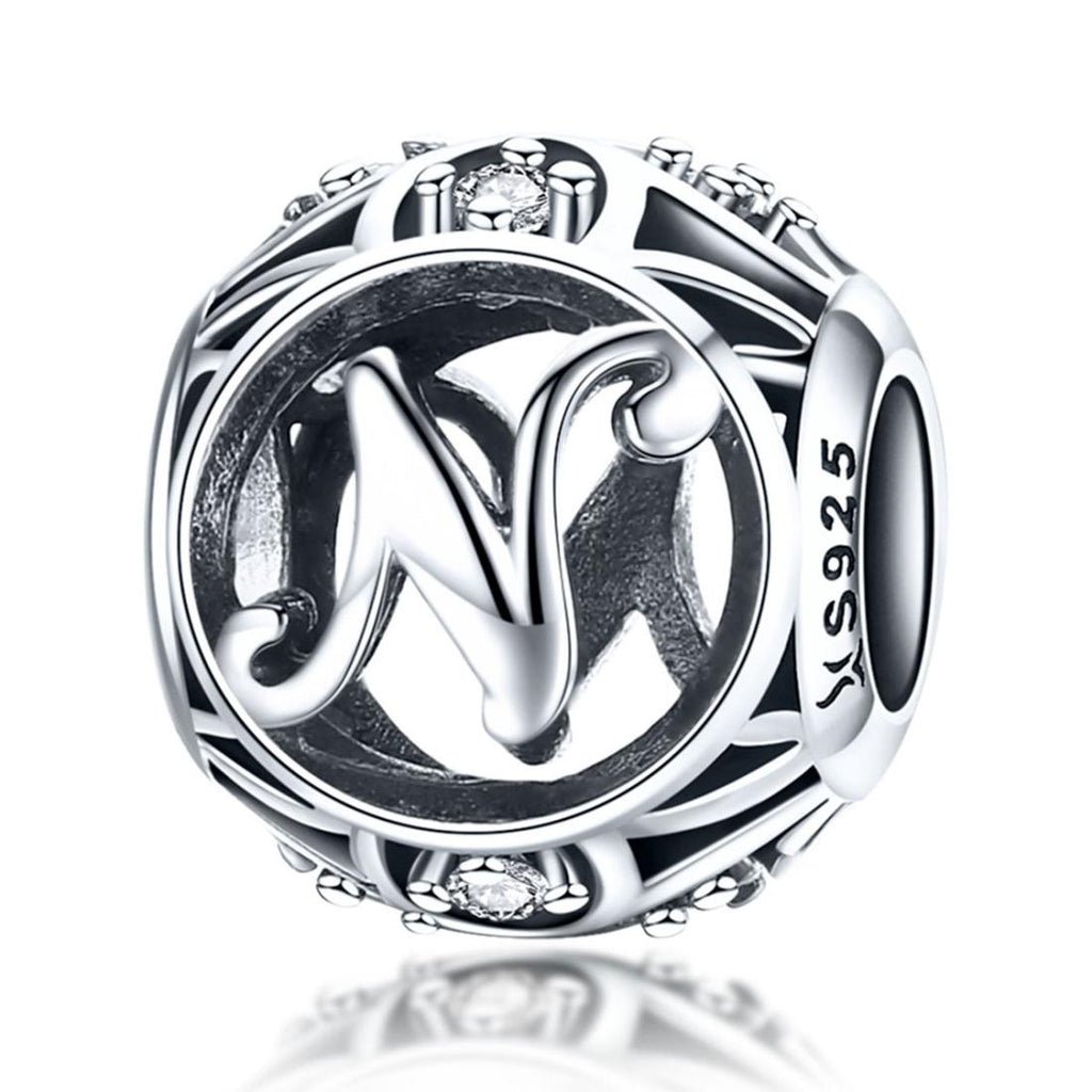 • 1 X 925 Sterling Silver 26 English Letter Bead For Diy Bracelets Necklaces – Style N
