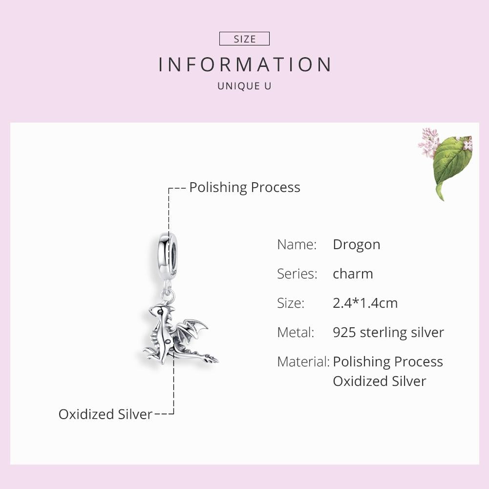 925 Sterling Silver Drogon Dinosaur Charm For Diy Bracelets Charms & Pendants