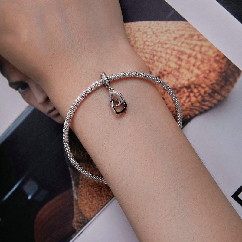 925 Sterling Silver Interlocking Love Heart Pendant Charms & Pendants