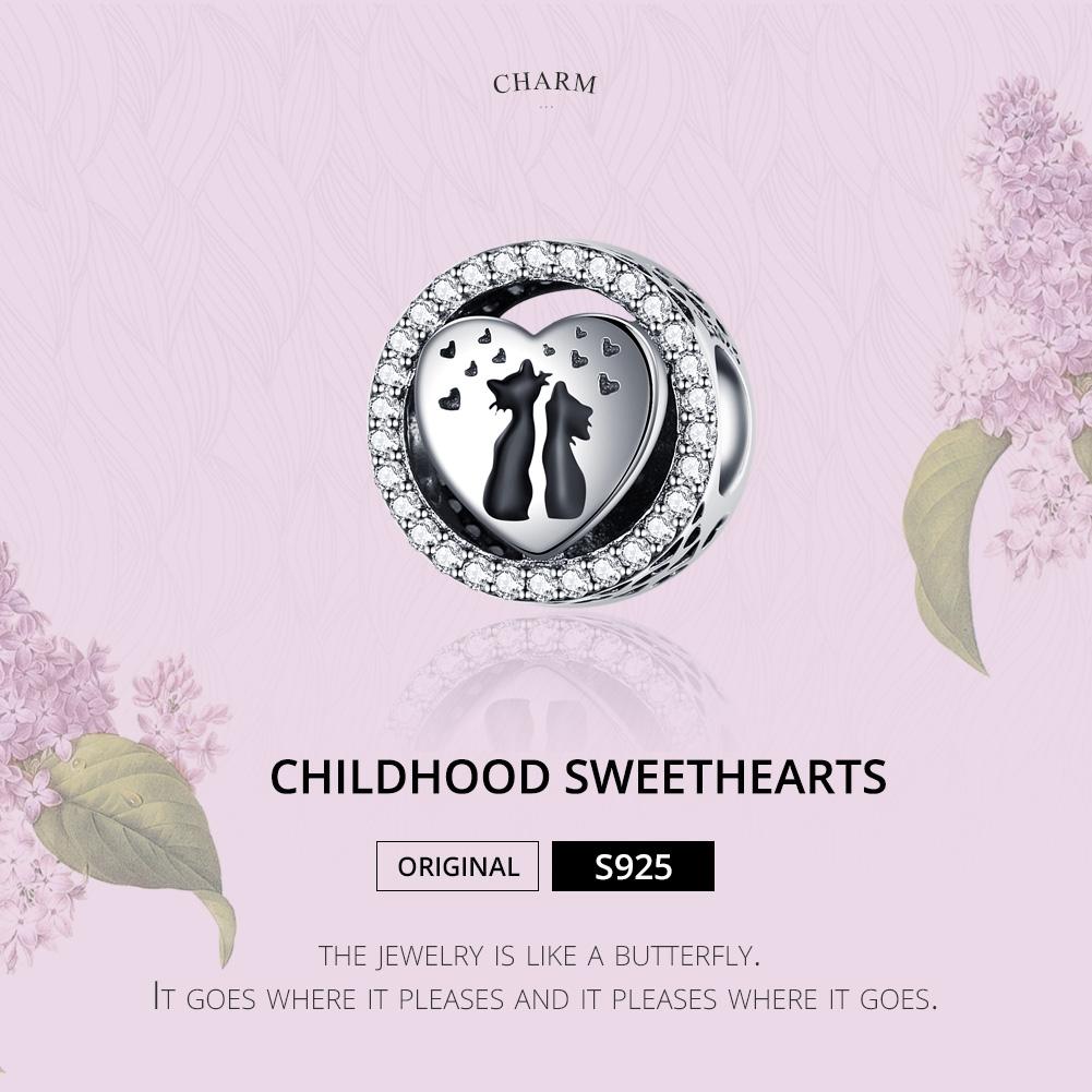 925 Sterling Silver Love Cat Heart Beads For Diy Bracelets & Necklaces Charms & Pendants