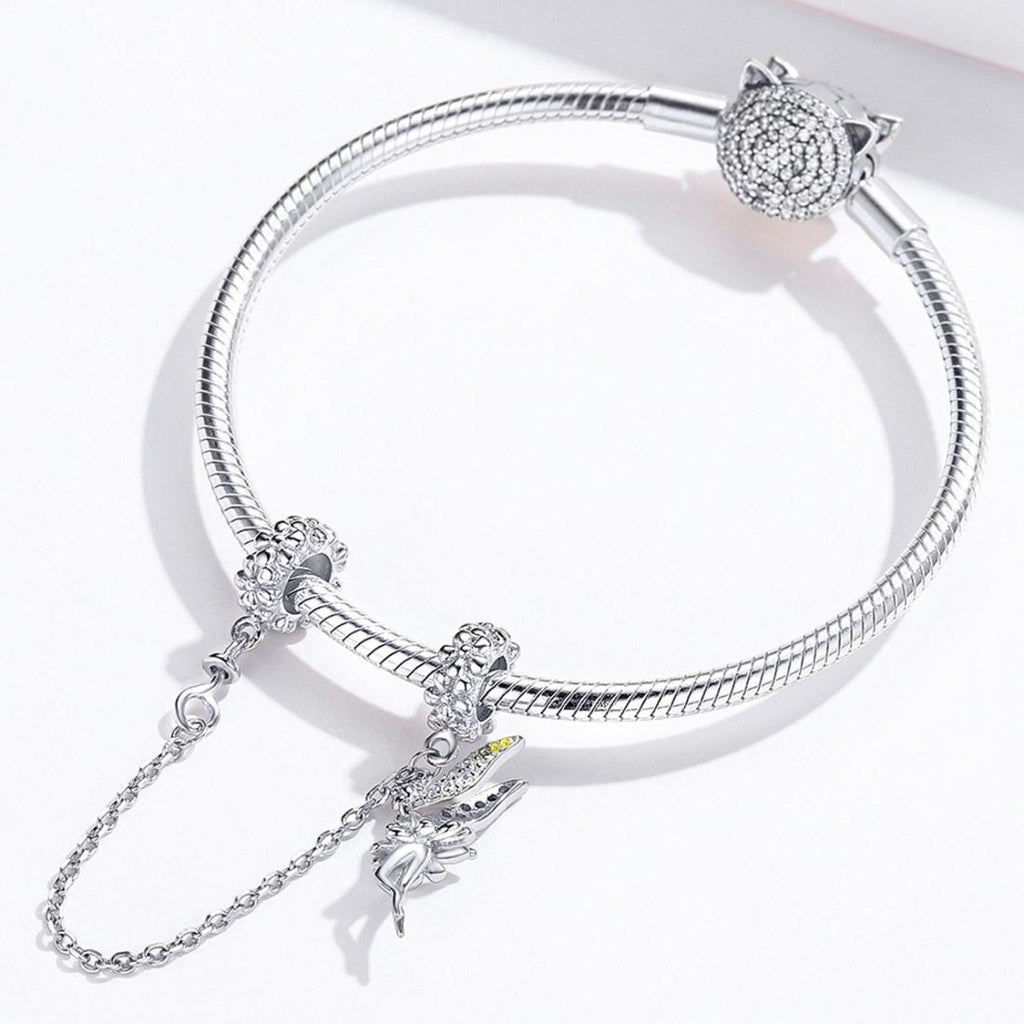 Add A Touch Of Whimsy And Elegance To Your Bracelet With This Beautifully Crafted Flower Fairy Safety Chain. Made Of 925 Silver With Platinum Plating And Adorned With Sparkling Zircon Stones It Offers Both Style And Security For Your Diy Jewelry Creations. Lightweight And Easy To Maintain It’S A Charming Addition To Any Charm Bracelet Or Bangle.