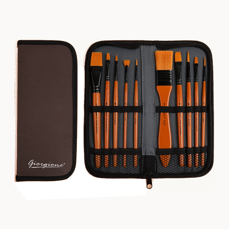 10Pcs Nylon Paint Brush Watercolor Oil Painting Acrylic Multi Function With Bag Artists Brushes