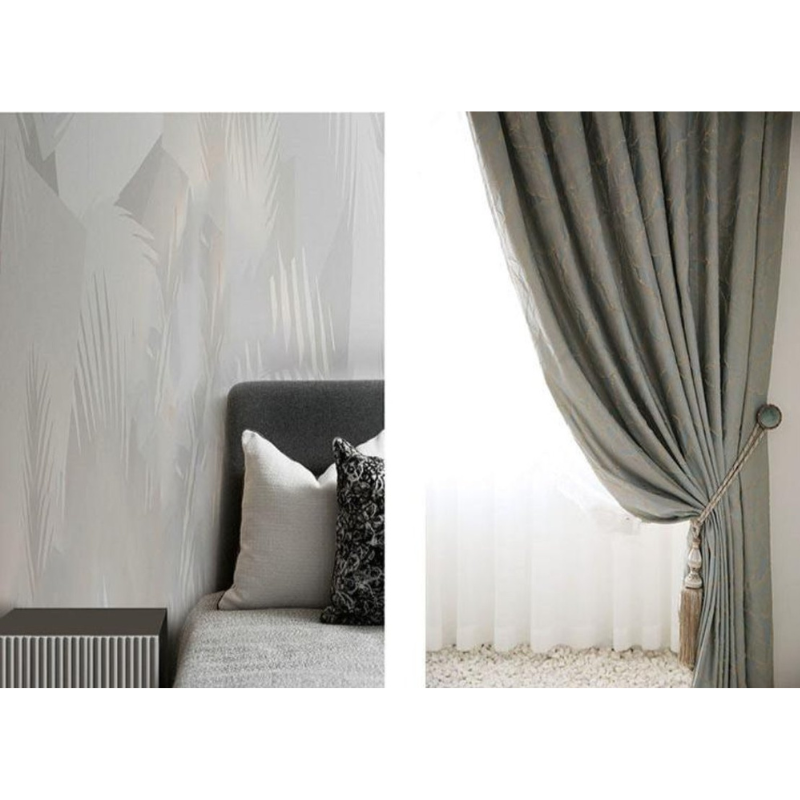 Curtain Blue 200 Centimetre X 250 3D Leaves Luxury Blackout Curtains & Drapes