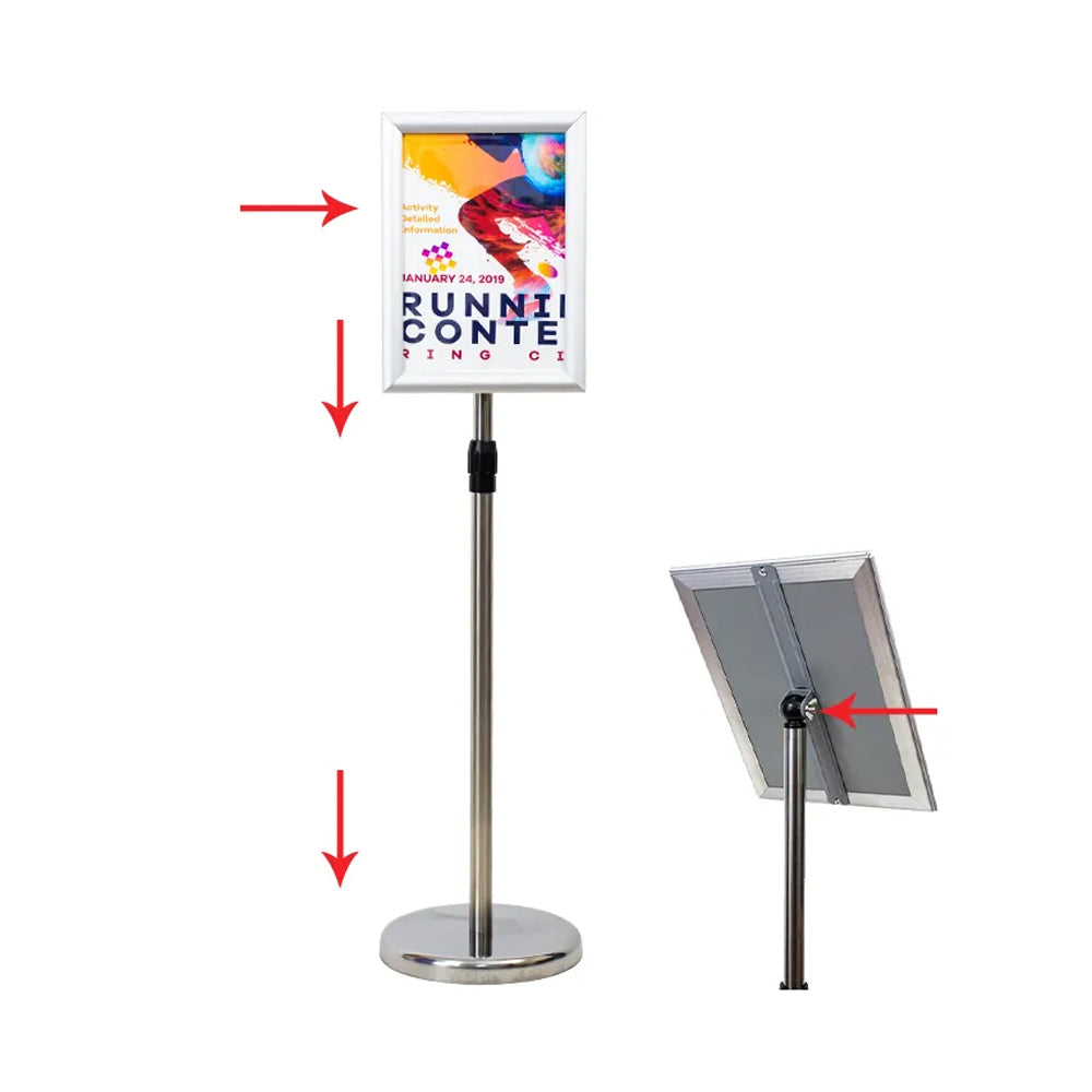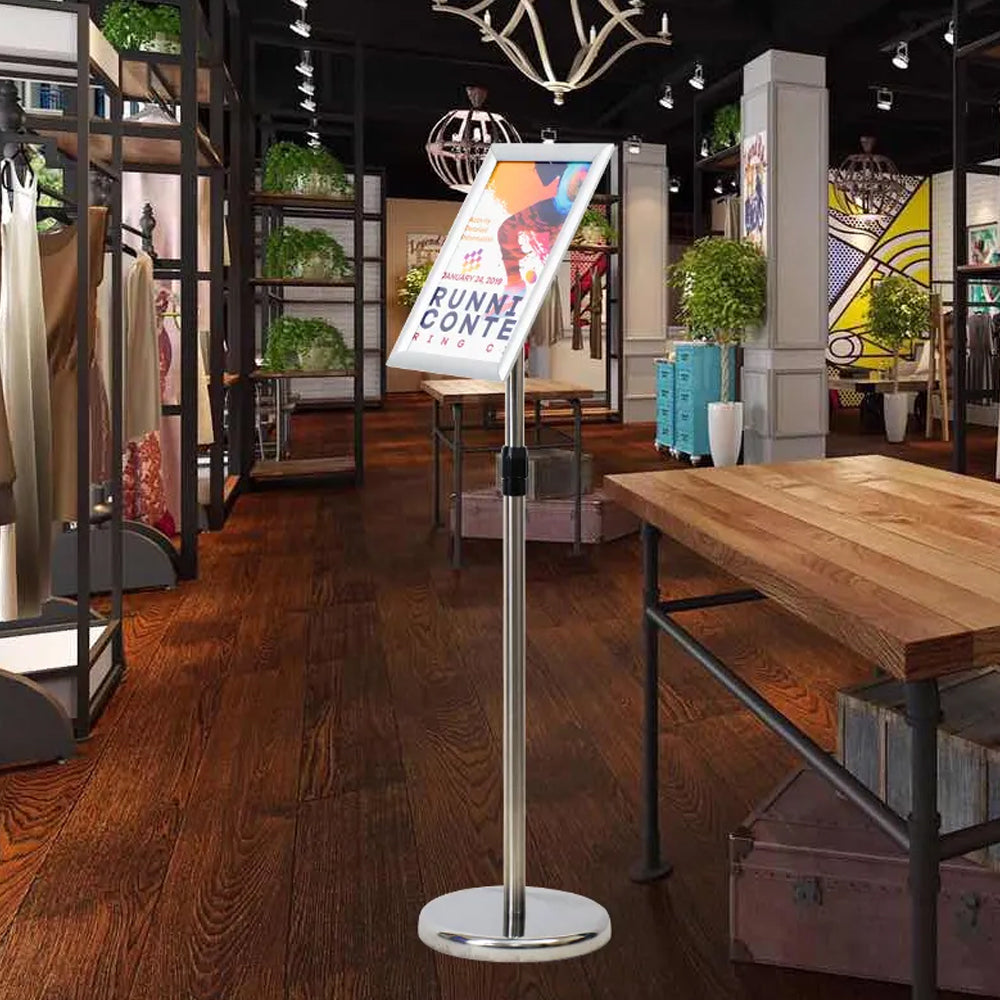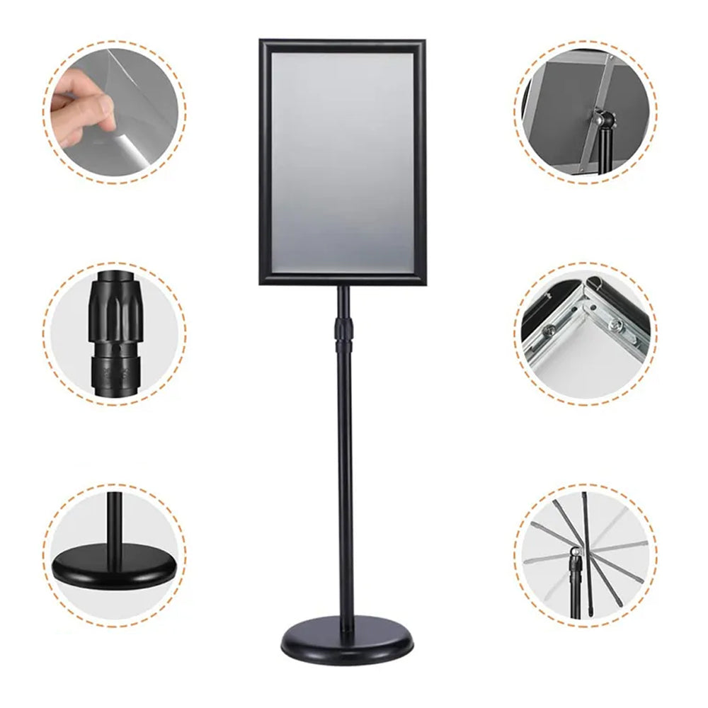 It Has A Modern And Sophisticated Look And The Height Of The Sign Holder Is Suitable For Standing Use. It Has A Front-Opening Snap Frame For Quick And Easy Poster Changes. The Stand Is Good On Most Surfaces And Can Be Used Both Indoors And Outdoors.