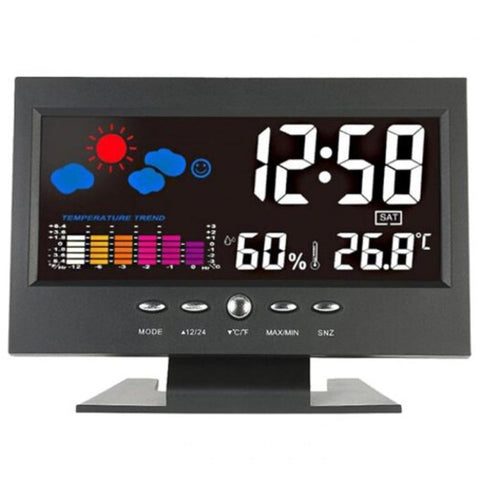 Multifunction Led Temperature And Humidity Color Display Calendar Voice Control Clock Weather Station Black Weather Stations