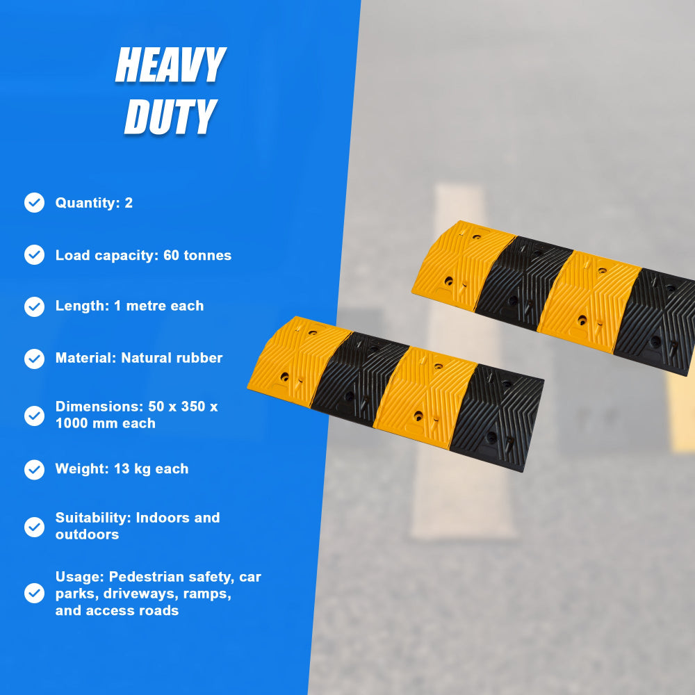 Pair Of 1M Long 60T Load Rubber Speed Bump Hump Modular Humps Road Other Safety Signs