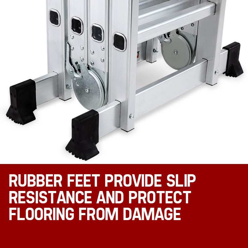 The 4.7M Multi-Fold Aluminium Ladder Is The Tool Every Handyman Needs. Easily Converts Into A Variety Of Configurations To Tackle A Wide Array Of Jobs. It Can Be Used As A Step Ladder Extension Ladder Hangover Ladder Scaffolding Platform And More It's Everything You Need In One!