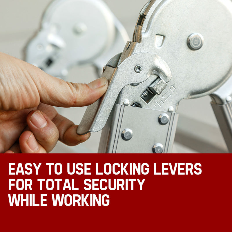Constructed From Strong Yet Lightweight Aluminium Means It's Durable And Yet Still Easy To Carry And Set-Up. Quality Easy To Use Locking Levers Will Ensure You Can Set-Up And Pack-Up With Ease And Be Sure Of Total Stability While You Work. While The Rubber Feet Provide Slip Resistance And Protect Flooring From Damage.