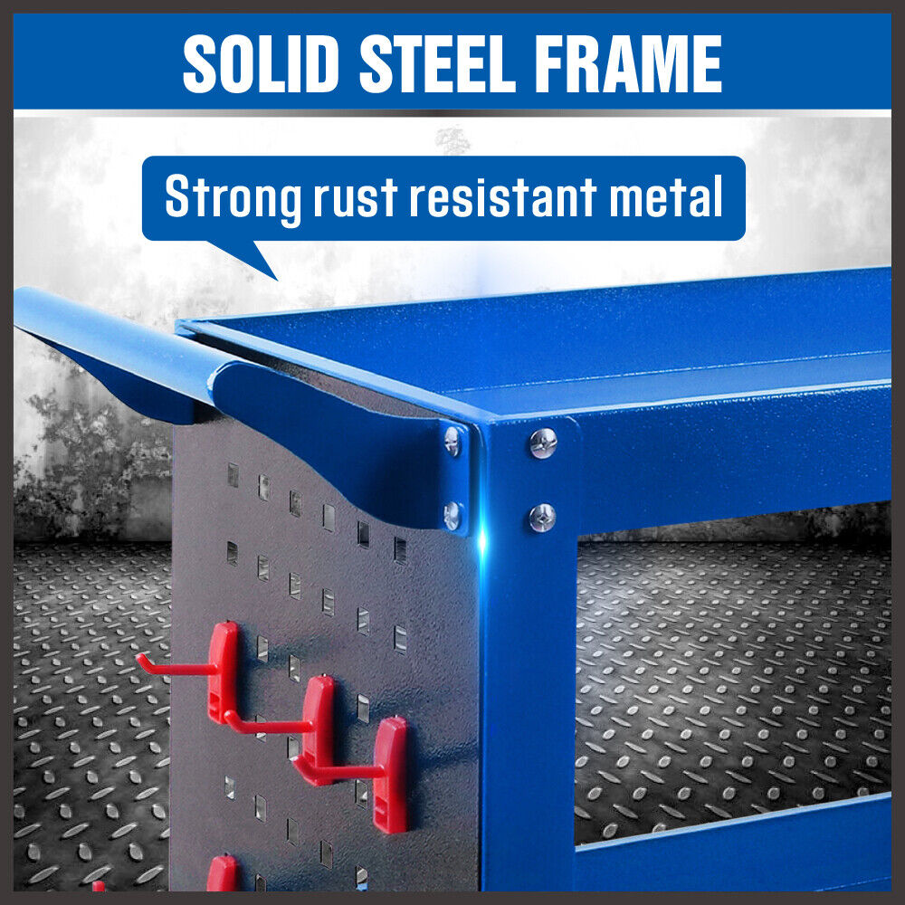 Sedy Blue 3 Tier Tool Cart Storage Trolley Toolbox Workshop Garage Organiser 150Kg Tool Boxes