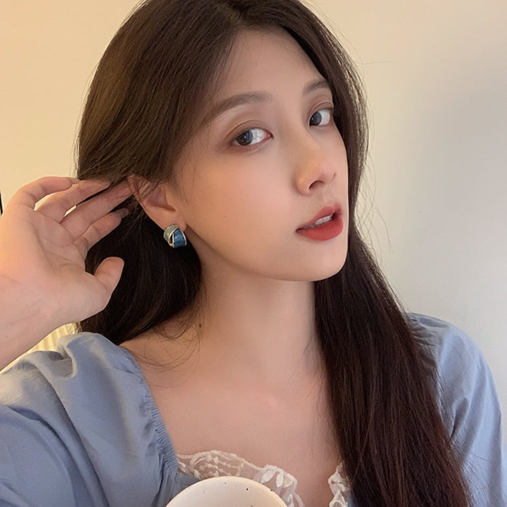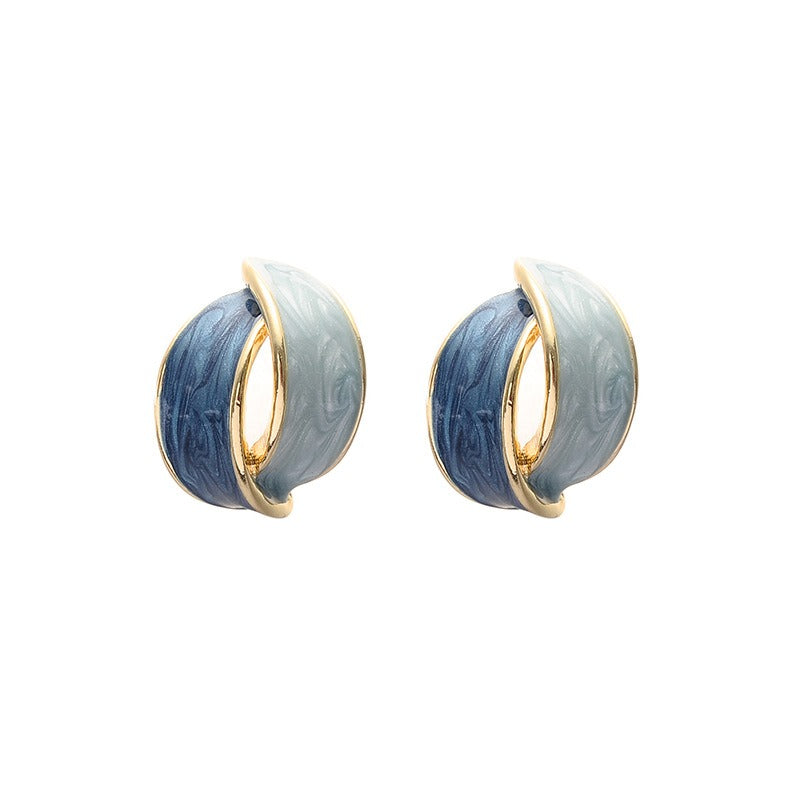 Veile Studios French Color Block Blue For Women Retro Earrings