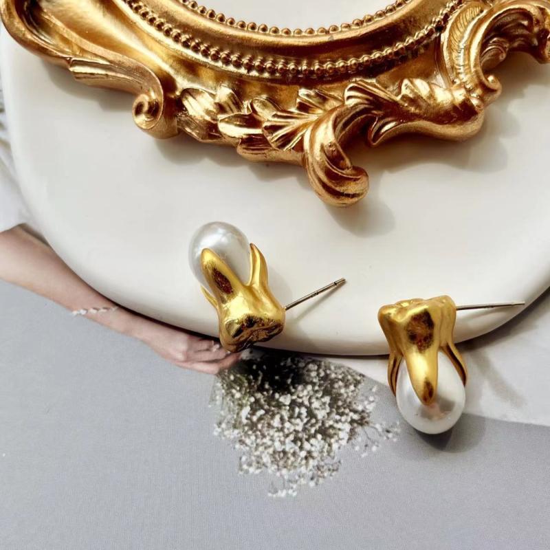 Veile Studios Abstract Facial Features Series Teeth Pearl In Copper Material Earrings