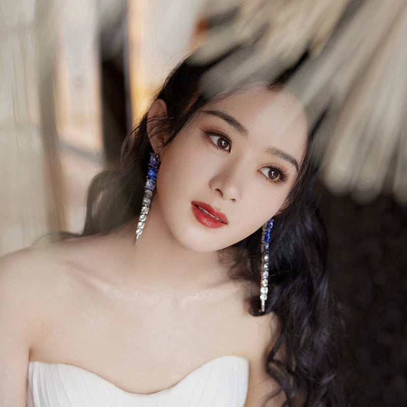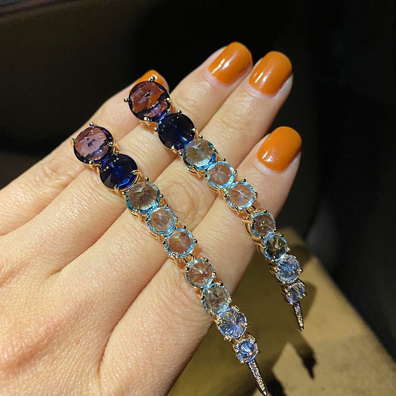 Veile Studios Elegant High End Fashion Jewellery For Women With Blue Diamonds And Copper Design Earrings