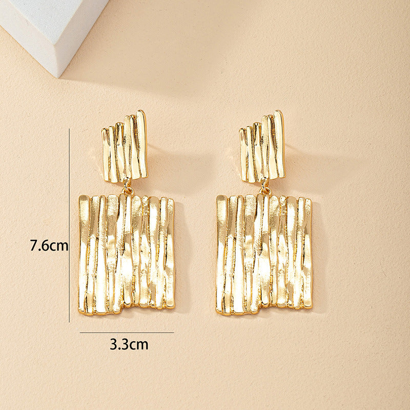 - 1 X Exaggerated Large Gold Earrings With Vertical Patterns In Alloy Fashionable Style