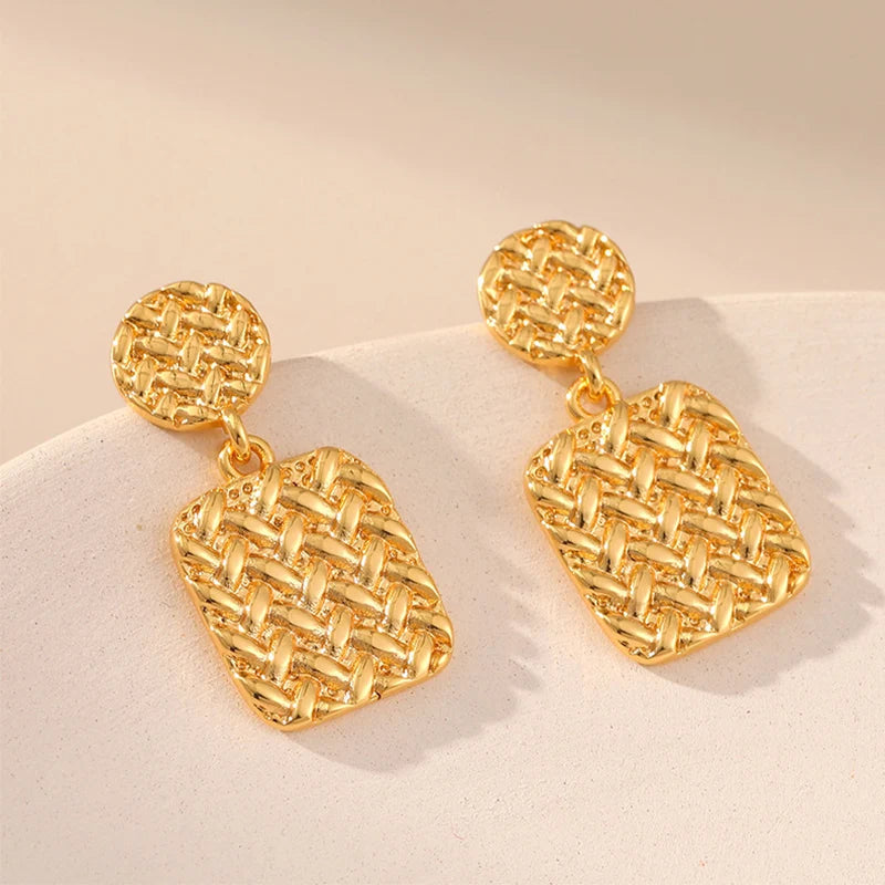 • 1 X Geometric Square Heavy Industry Earrings With Metal Texture In Copper