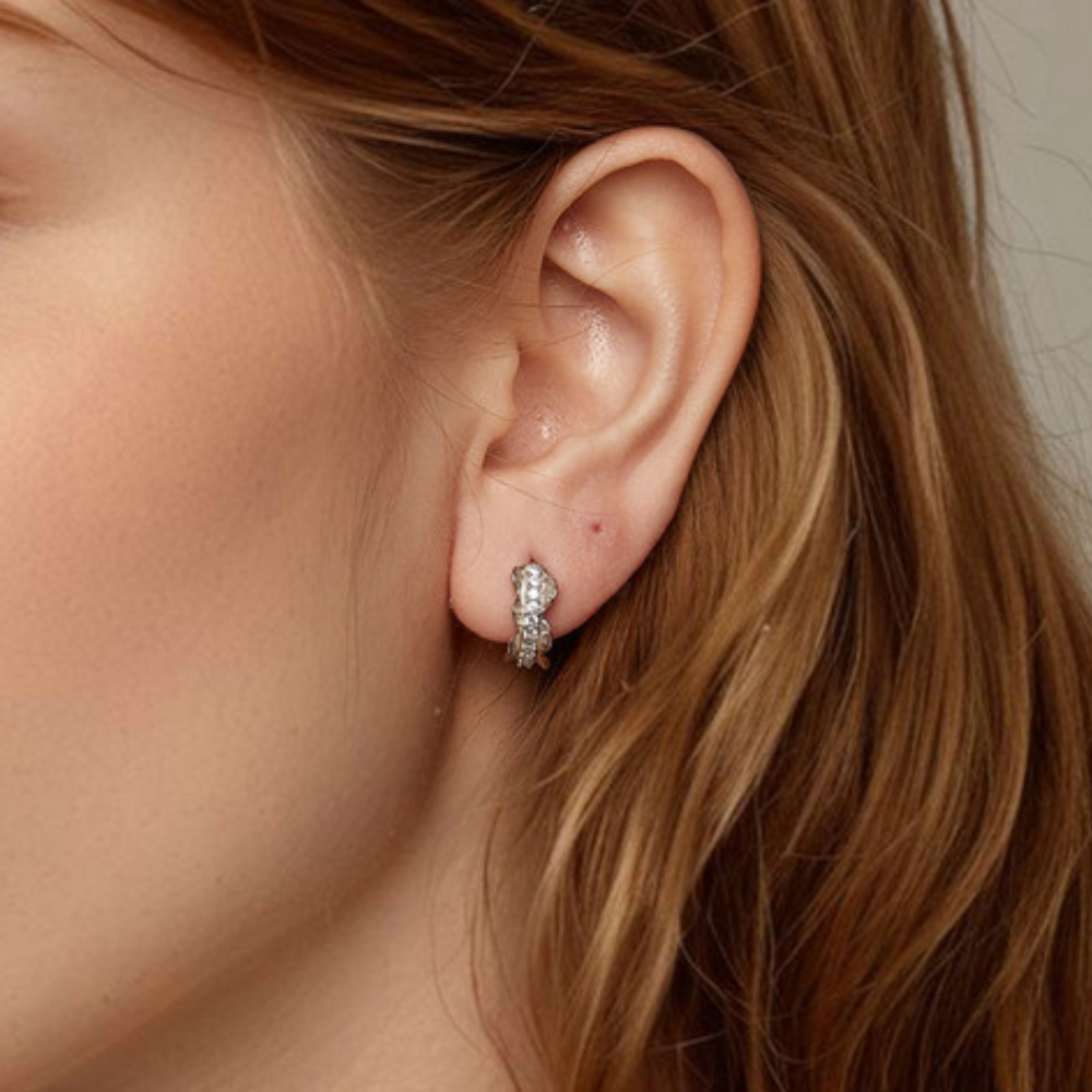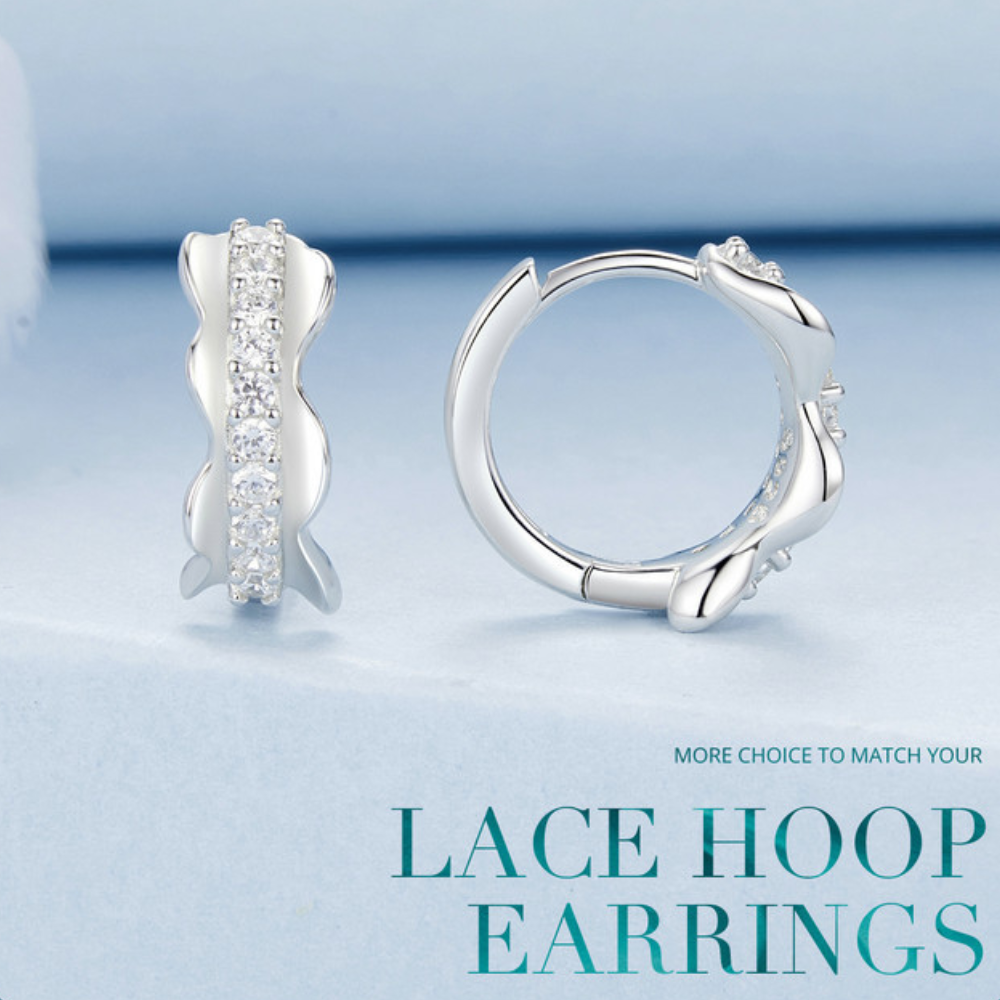 - 1 X Silver Charm Romantic Lace Ear Buckle Earrings S925 Pure Silver For Girls
