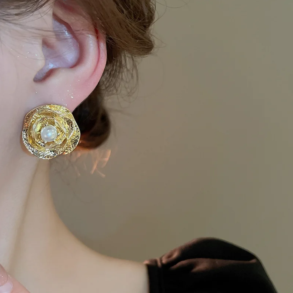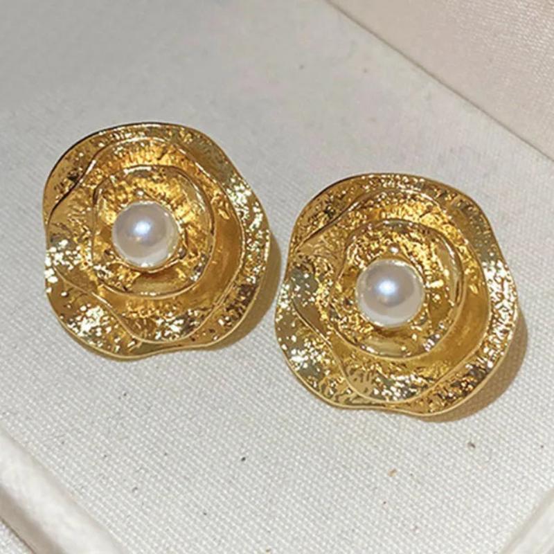 Veile Studios Silver Needle Middle Ages Flower Pearl Alloy Imitation Earrings