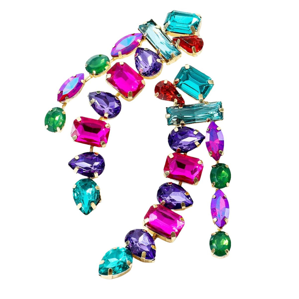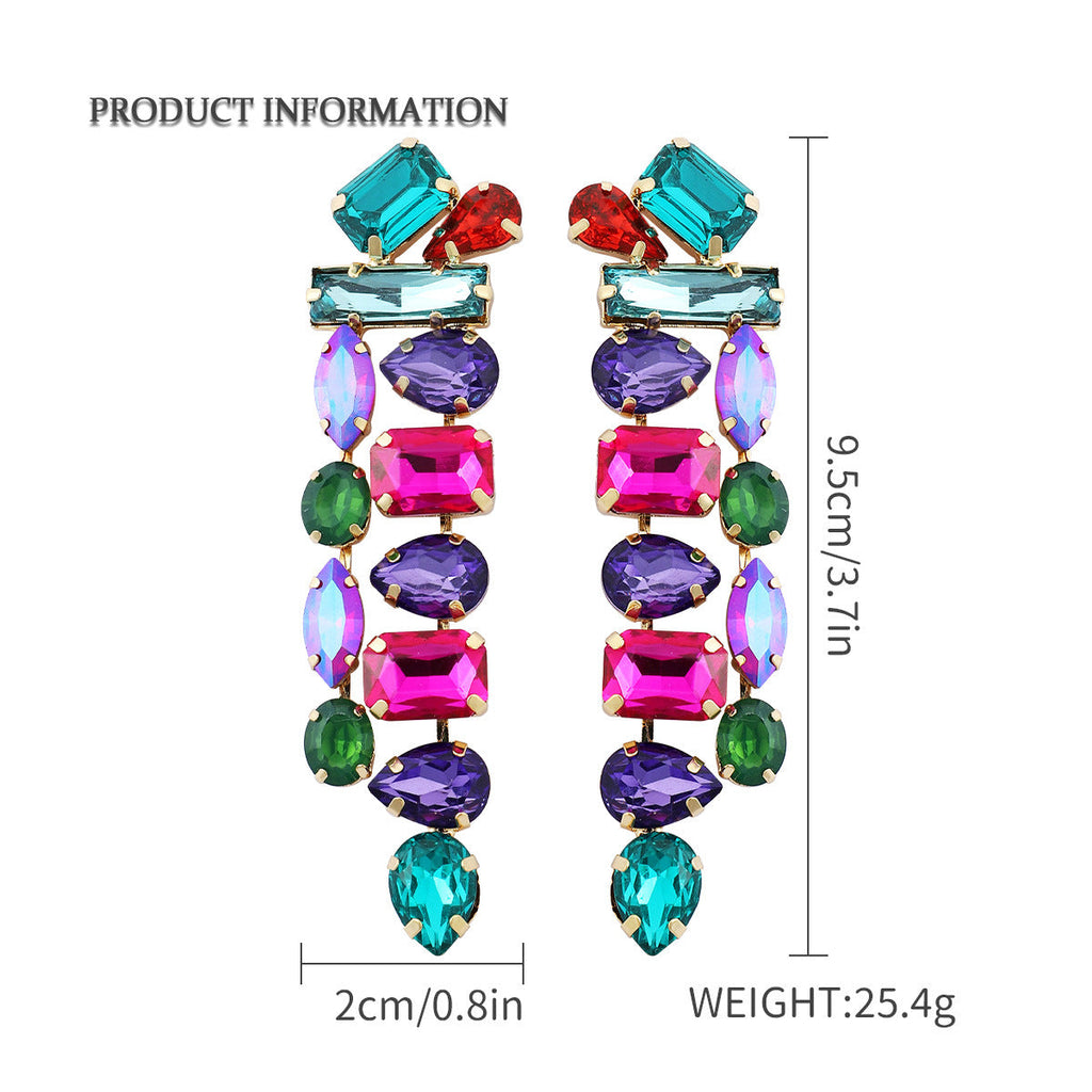 Veile Studios Water Drop Shape Colourful Glass Rhinestone Long Tassel For Women And Girls Earrings