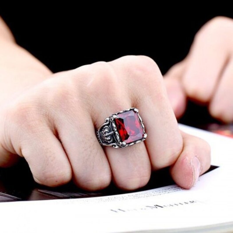 Veile Studios Men's Titanium Steel Inlaid Zircon Crown Ring Red 10 Rings