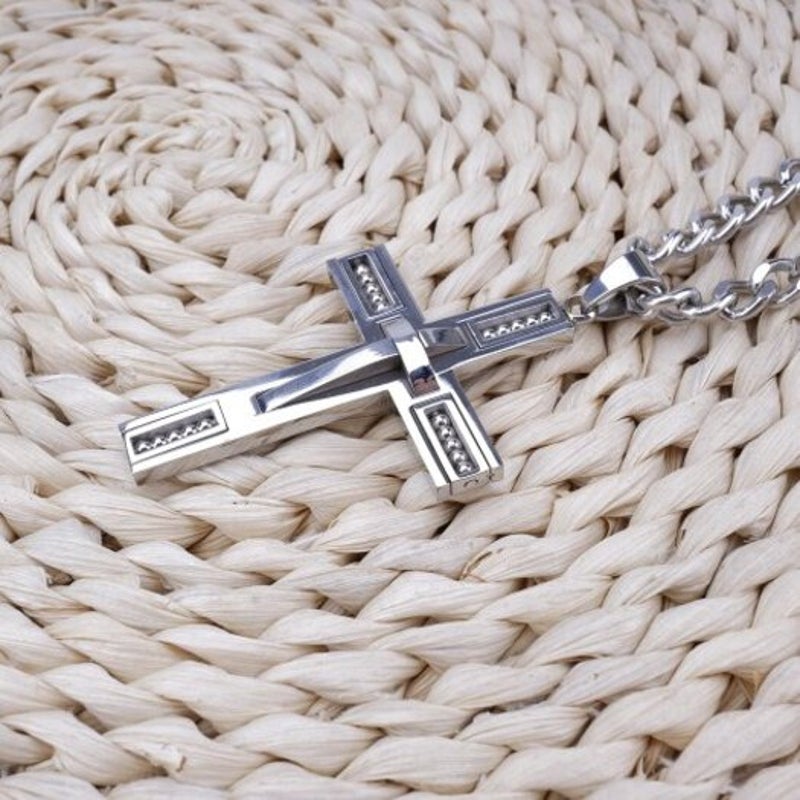 Veile Studios Stainless Steel Beaded Cross Men Pendant Necklace Silver 1Pc Pendants