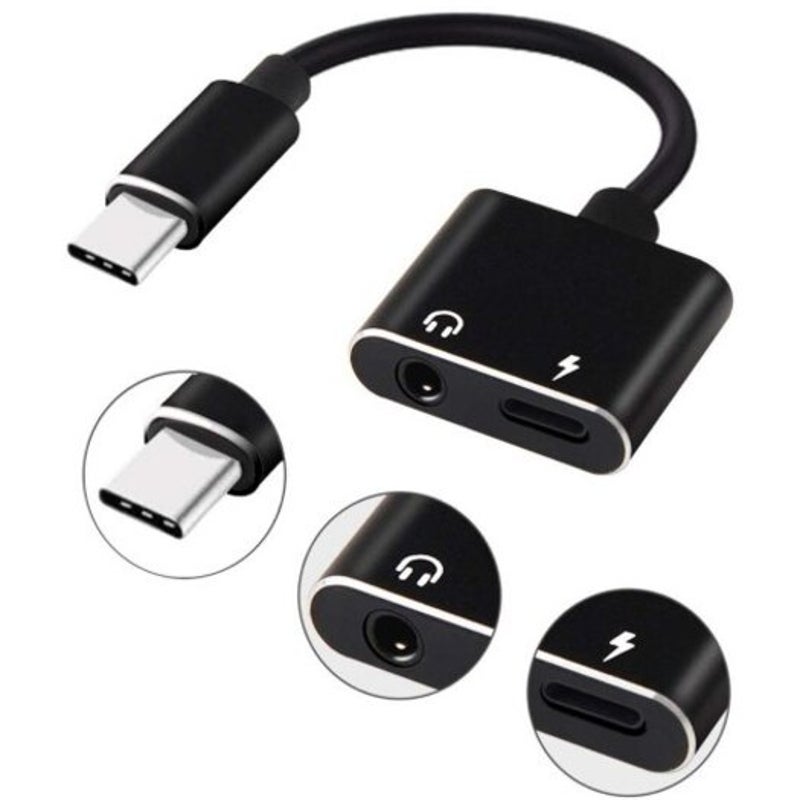 Usb Type C To 3.5 Mm And Charger 2 In 1 Headphone Audio Jack Cable Adapter Black Cables & Adapters