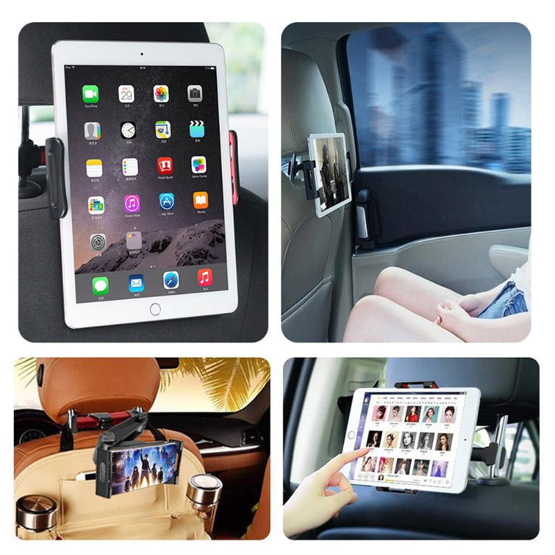 • This car headrest mount works with tablets mobile phones and other devices ranging from 16-28cm thus covering a wide spectrum of mobile devices sold in the market today. It uses the spring method where the bracket is firmly attached to the device and does not move easily. It has intentional holes that allow the device to be charged while hooking into the car's headrest mount.