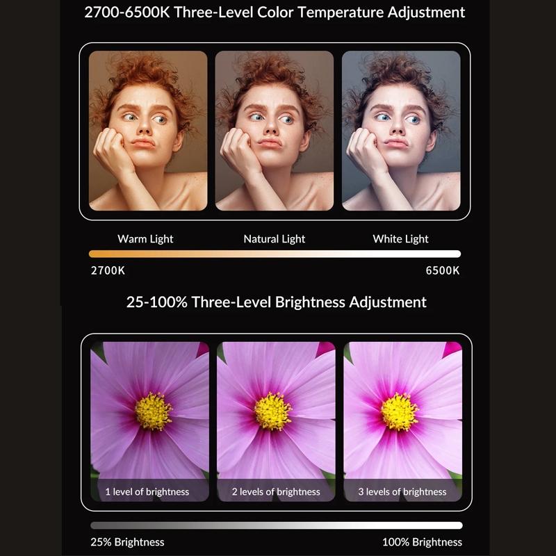 - Three Levels Of Colour Temperature (Two Thousand Seven Hundred To Six Thousand Five Hundred Kelvin) And Brightness Adjustment
