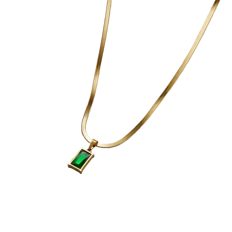 Unique Blade Chain Luxury Emerald Zircon Pendant Titanium Steel Necklace For Women