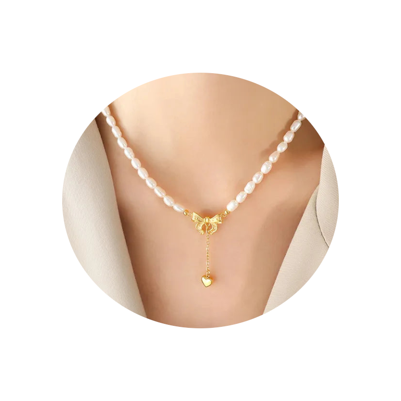 Titanium Steel Freshwater Pearl Heart Necklace Necklaces & Pendants
