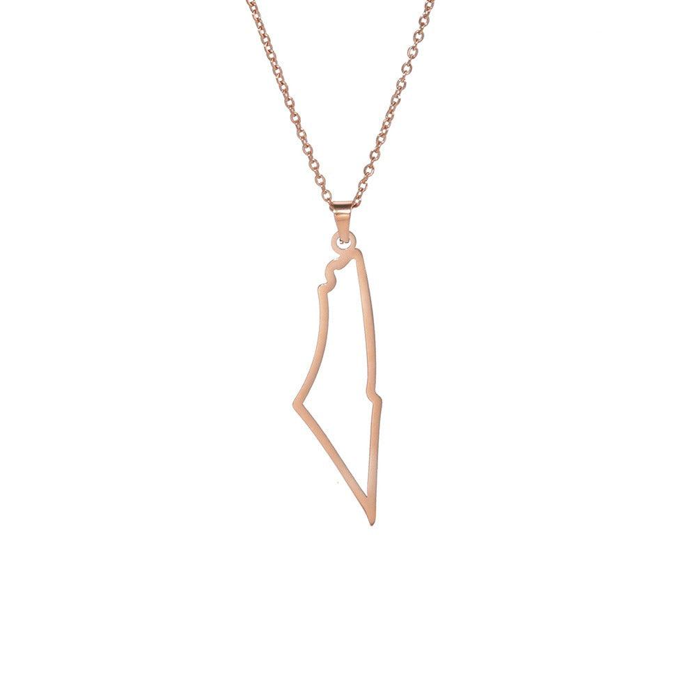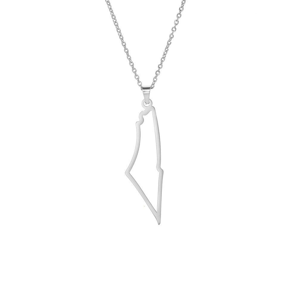 Veile Studios Palestine Map Outline Mountain Stainless Steel Pendant Necklace Women Necklaces & Pendants
