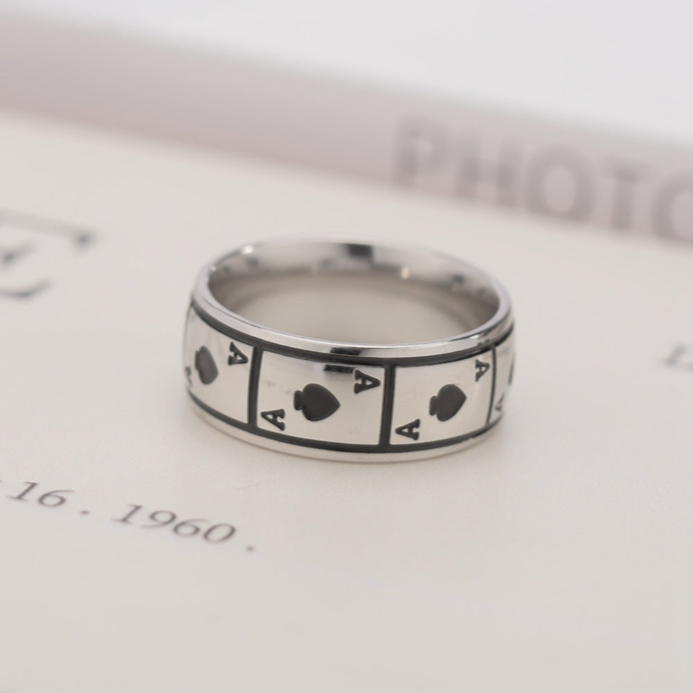 Veile Studios Magic Ace Of Spades Lucky Titanium Steel Jewellery Rings