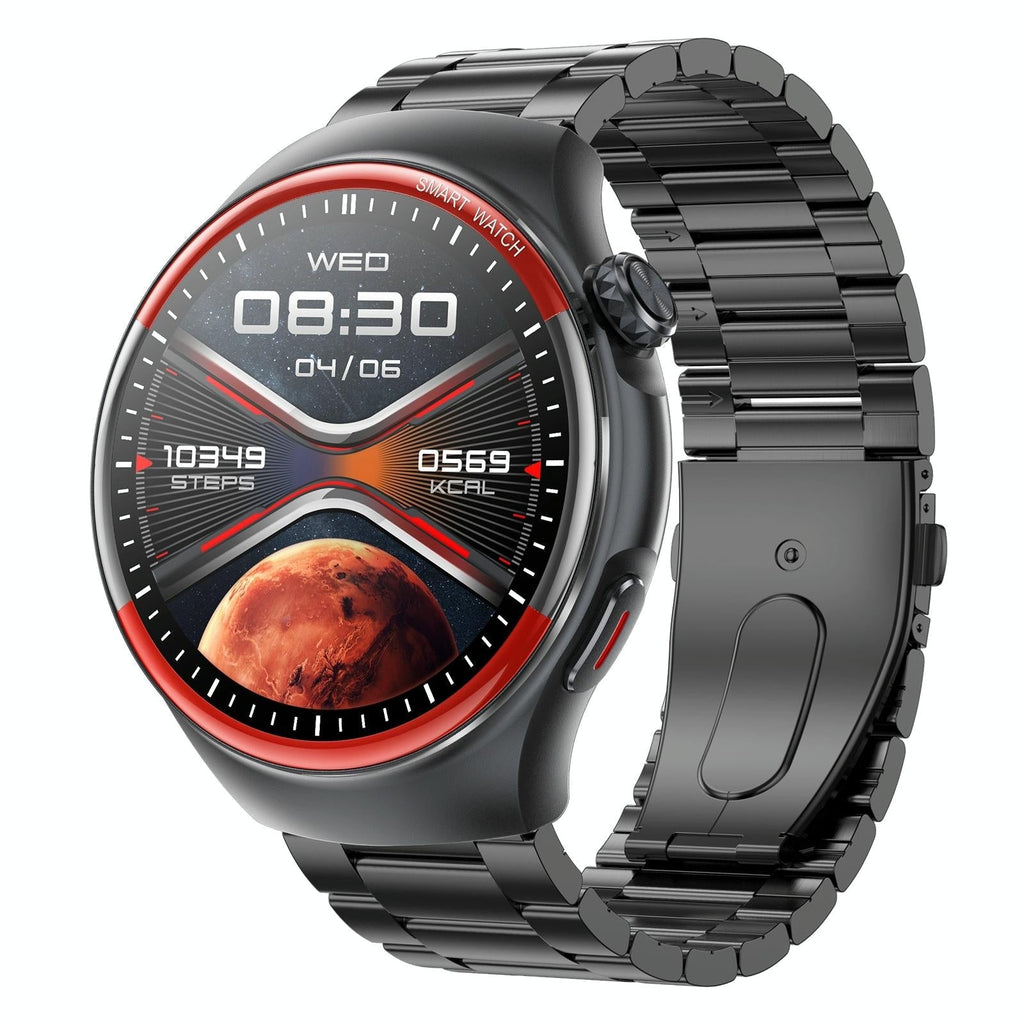 Round Screen Smart Watch - Bt Call Health Tracking (Leather Strap)