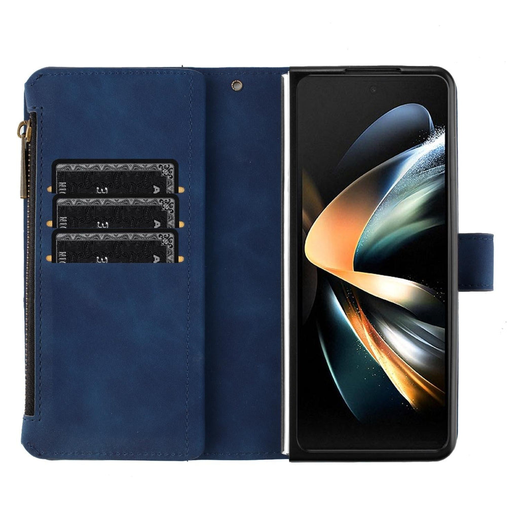 For Samsung Galaxy Z Fold4 5G Leather Zip Wallet With Rhombus Texture Blue Cases Covers & Skins