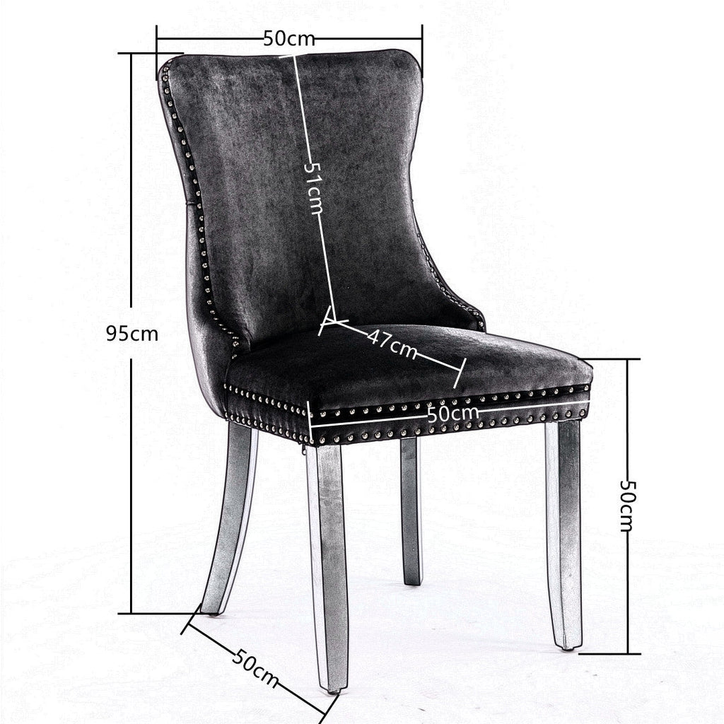 4X Velvet Upholstered Tufted Wingback Side With Studs Trim Solid Wood Legs For Kitchen Dining Chairs