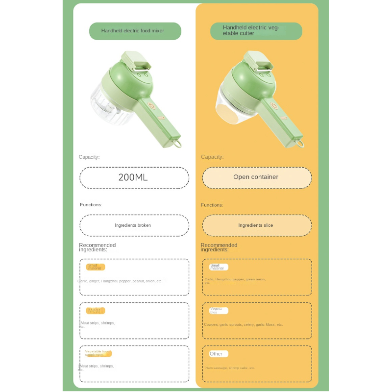 • With it you can have anAelectric vegetable cutterAand anAelectric meat mincer and an electric cleaning brushAat the same time aAmulti-functional set.